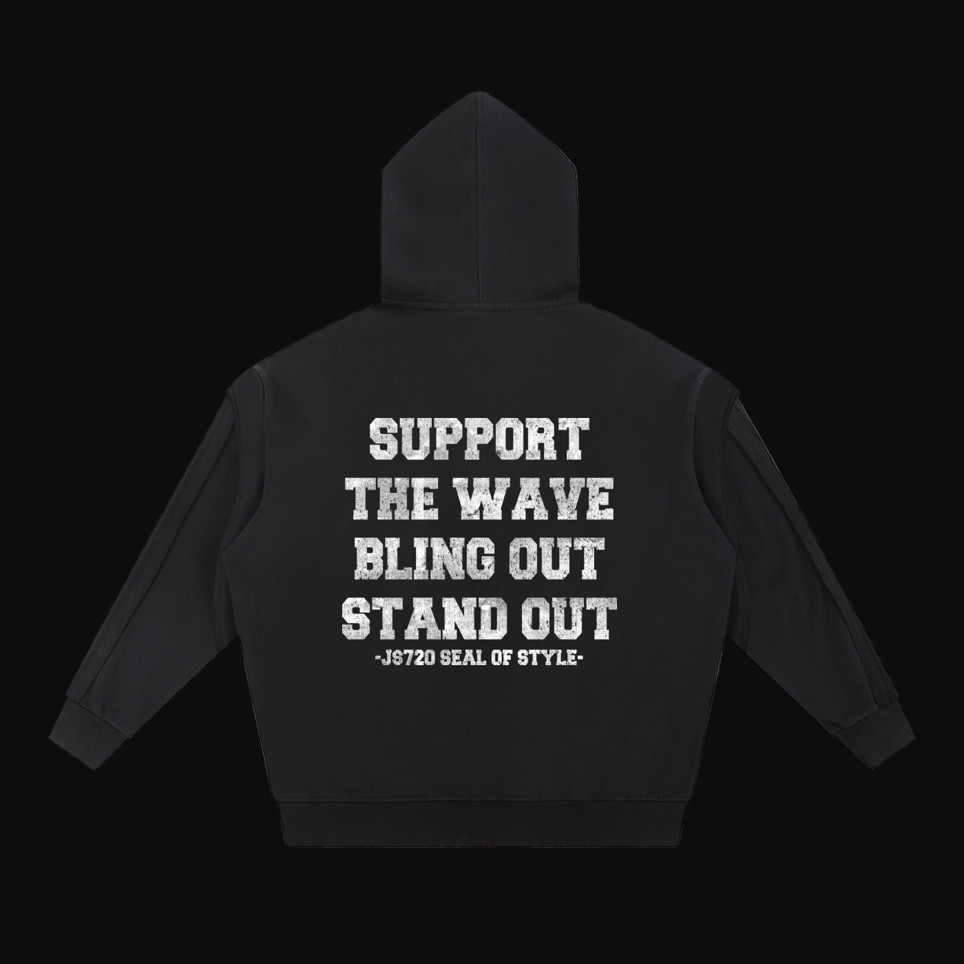 The Bling Certified Support Hoodie is for the ones who back the wave and do it with style — no cap, no filters, just real motion. Built from a 450 GSM heavyweight blend (56% cotton / 44% polyester), it hits that perfect balance between street and luxury — thick, durable, and unapologetically bold.